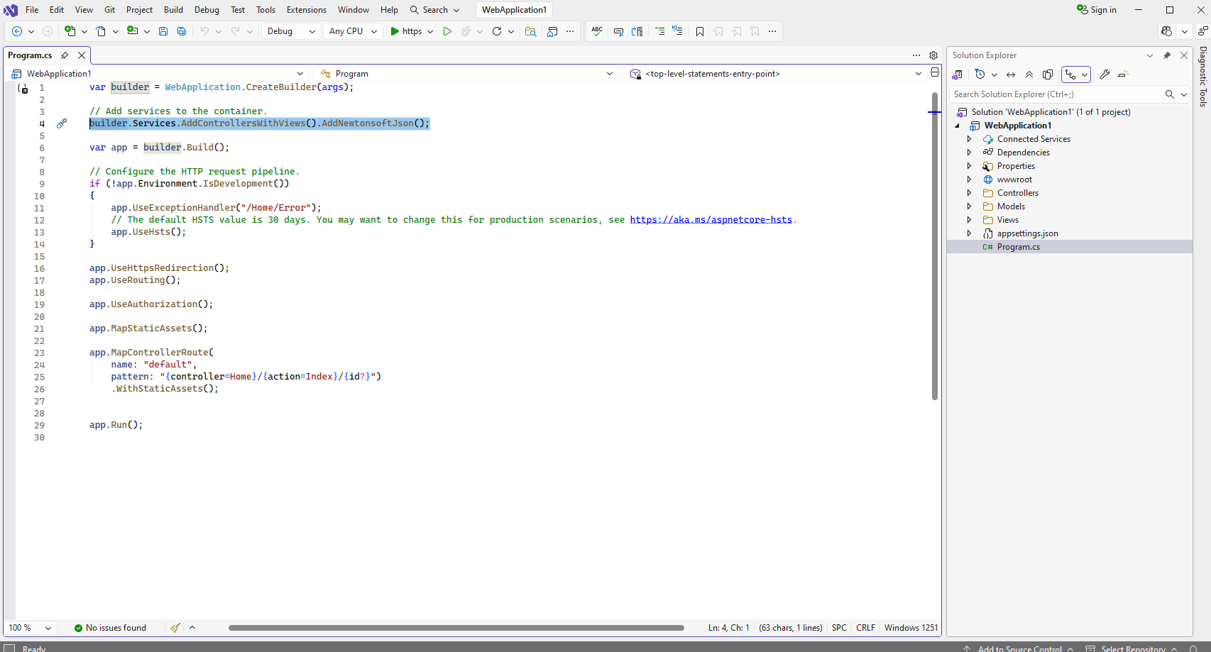 builder.Services.AddControllersWithViews().AddNewtonsoftJson();