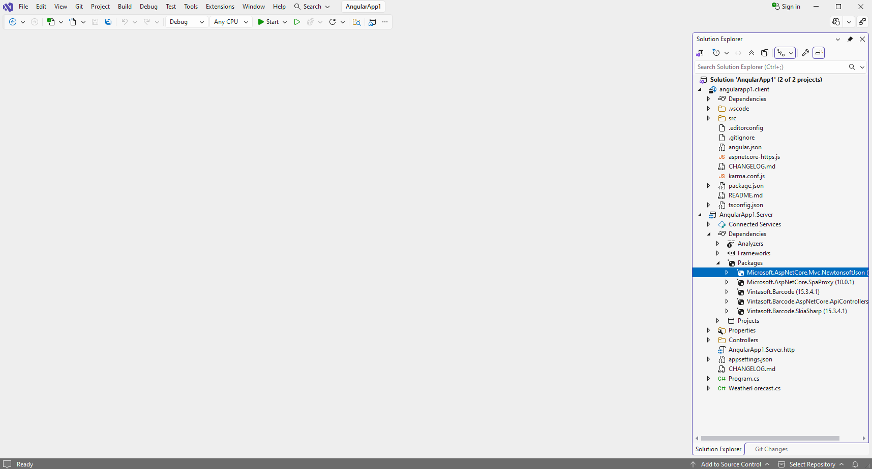 Проект "AngularApp1.Server": Добавьте ссылку на nuget-пакет "Microsoft.AspNetCore.Mvc.NewtonsoftJson" для десериализации результатов распознавания штрих-кодов.