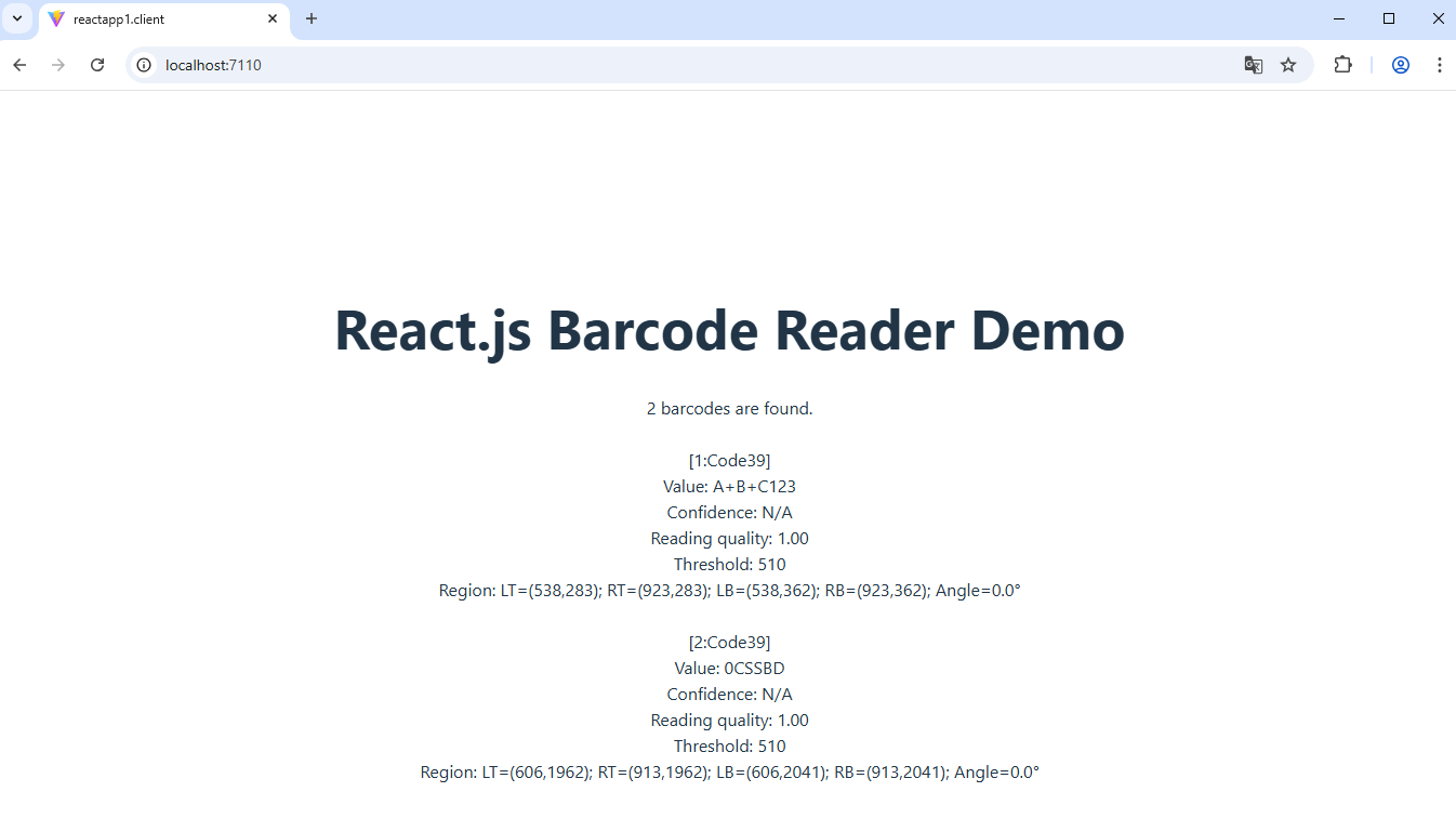 Данное руководство демонстрирует, как создать пустое приложение "React.js и ASP.NET Core" в Visual Studio .NET 2026 и распознать штрих-коды в изображении в приложении "React.js и ASP.NET Core".