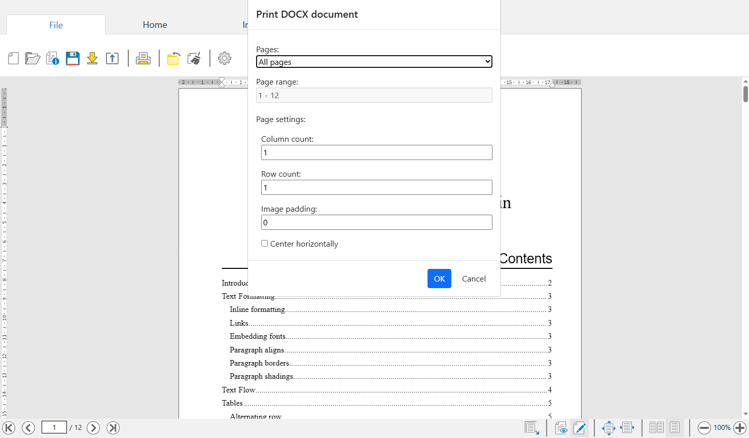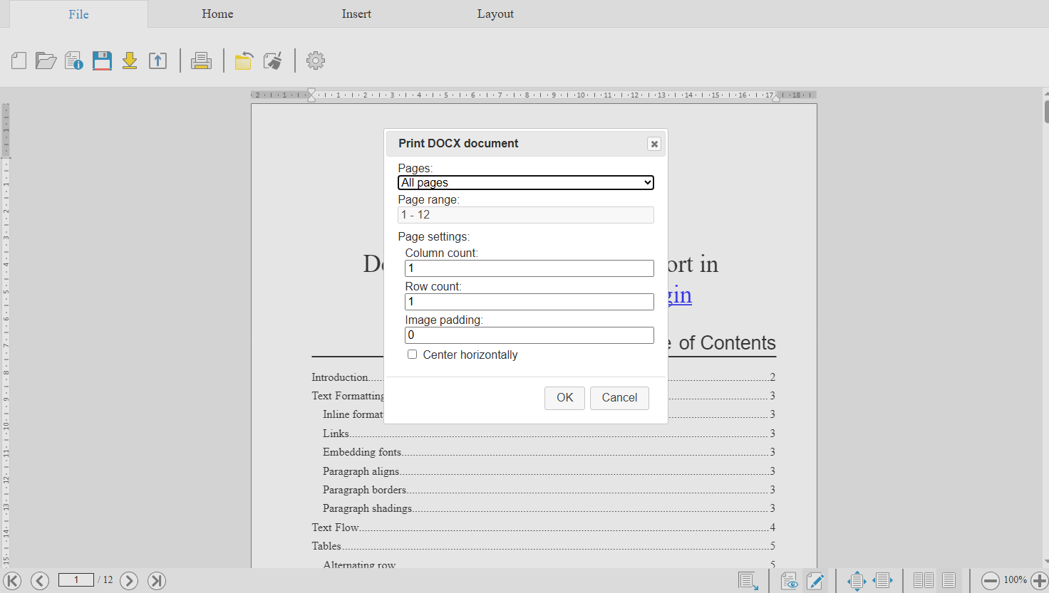 WebDocumentEditorJS и который позволяет распечатать DOCX документ, отображаемый в редакторе документа.
