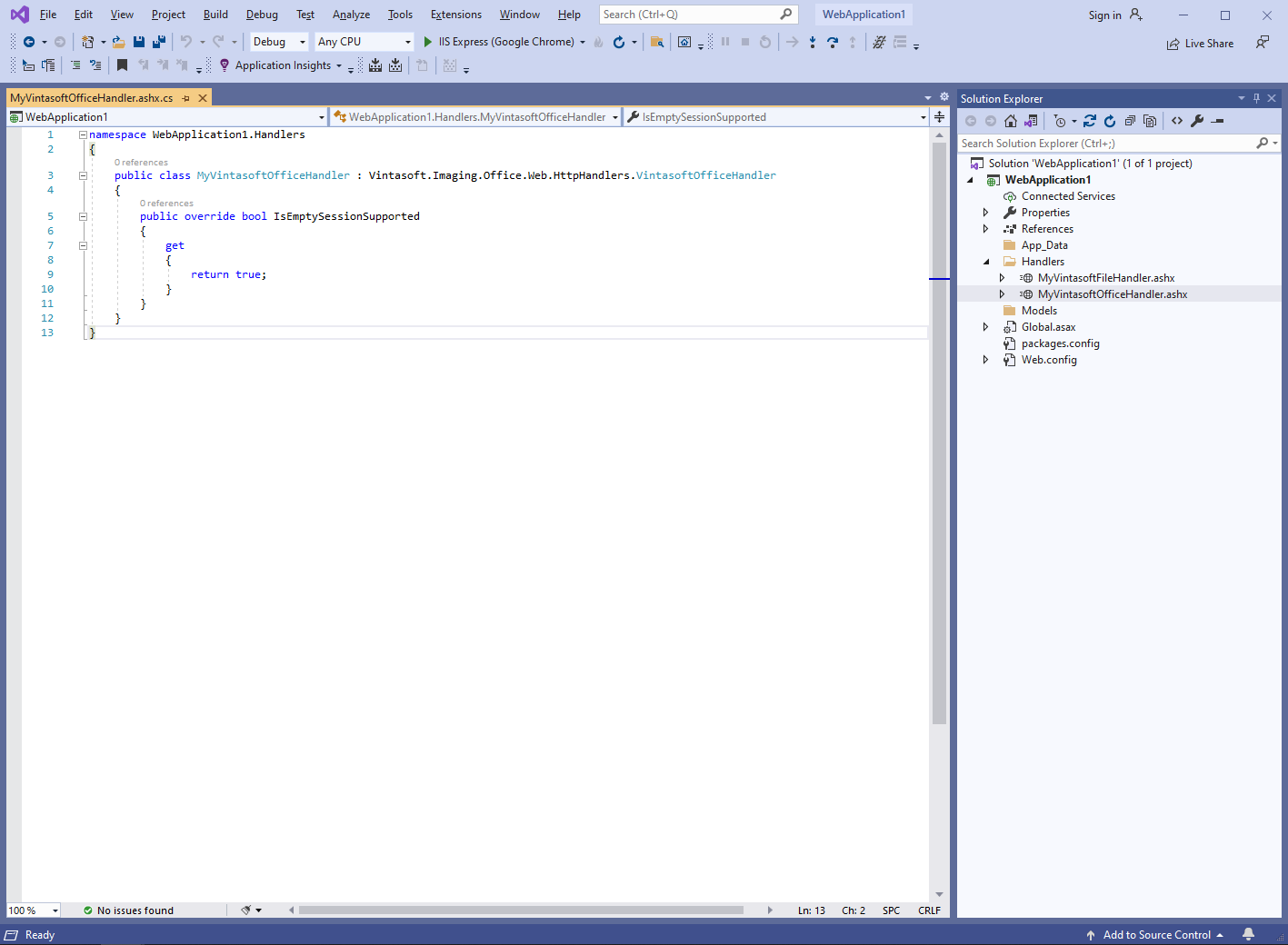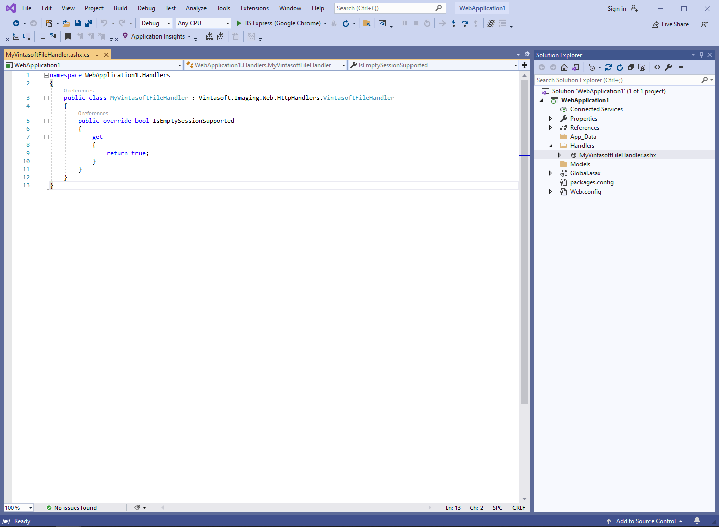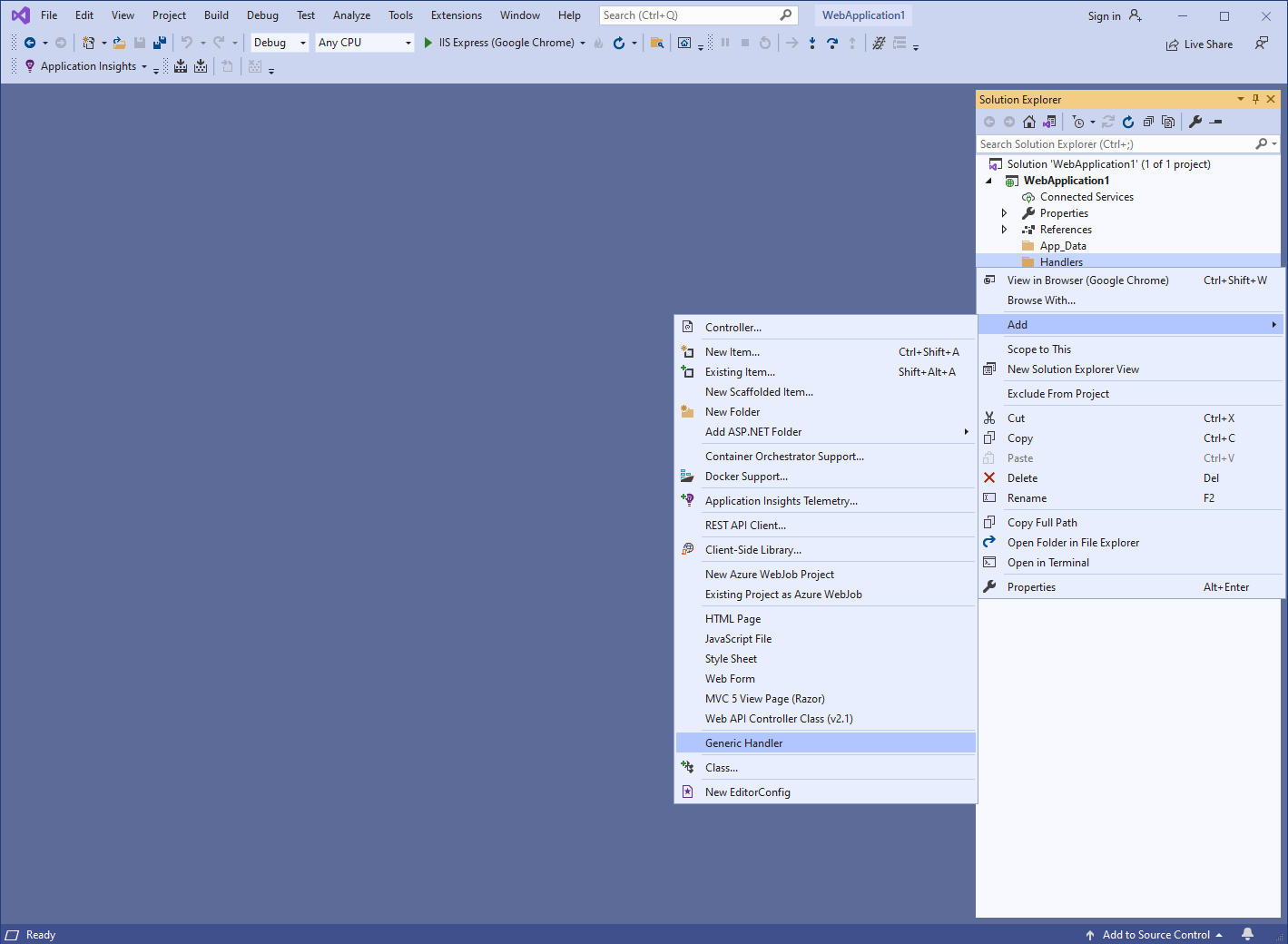 - Добавьте папку "Handlers" в приложение ASP.NET WebForms.