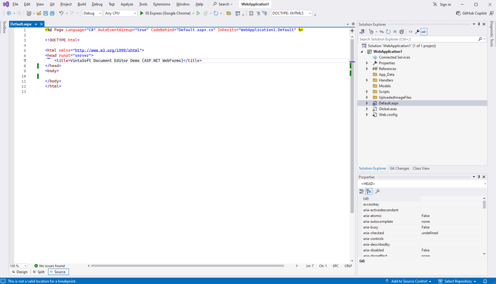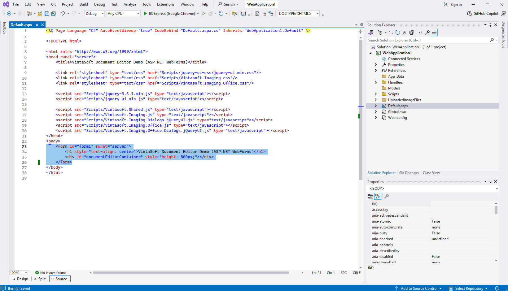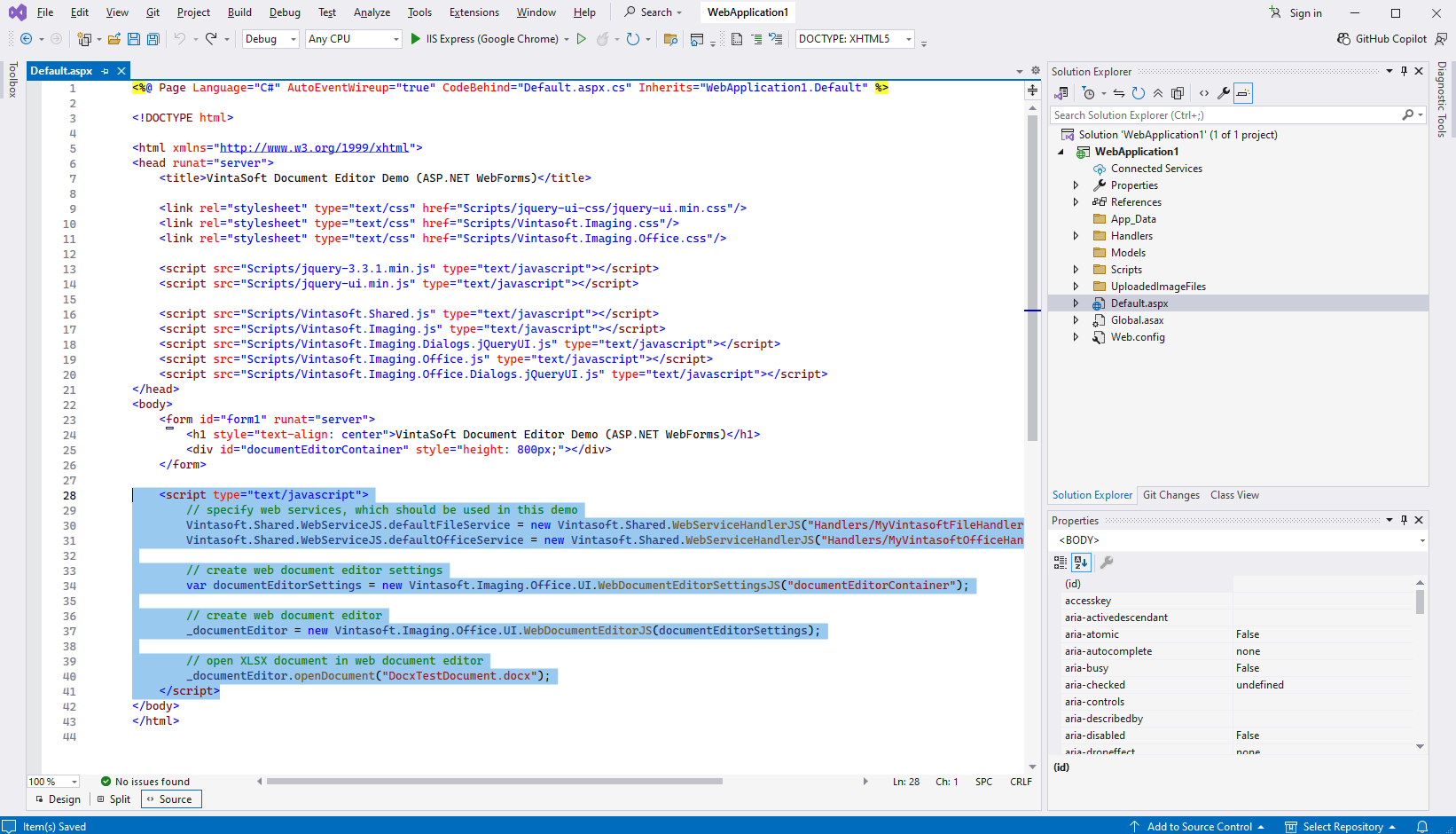 В этом руководстве показано, как создать пустое веб-приложение ASP.NET в Visual Studio .NET 2019 и добавить веб редактор документа (с возможностью открытия, редактирования и сохранения документов DOCX) в приложение ASP.NET WebForms.