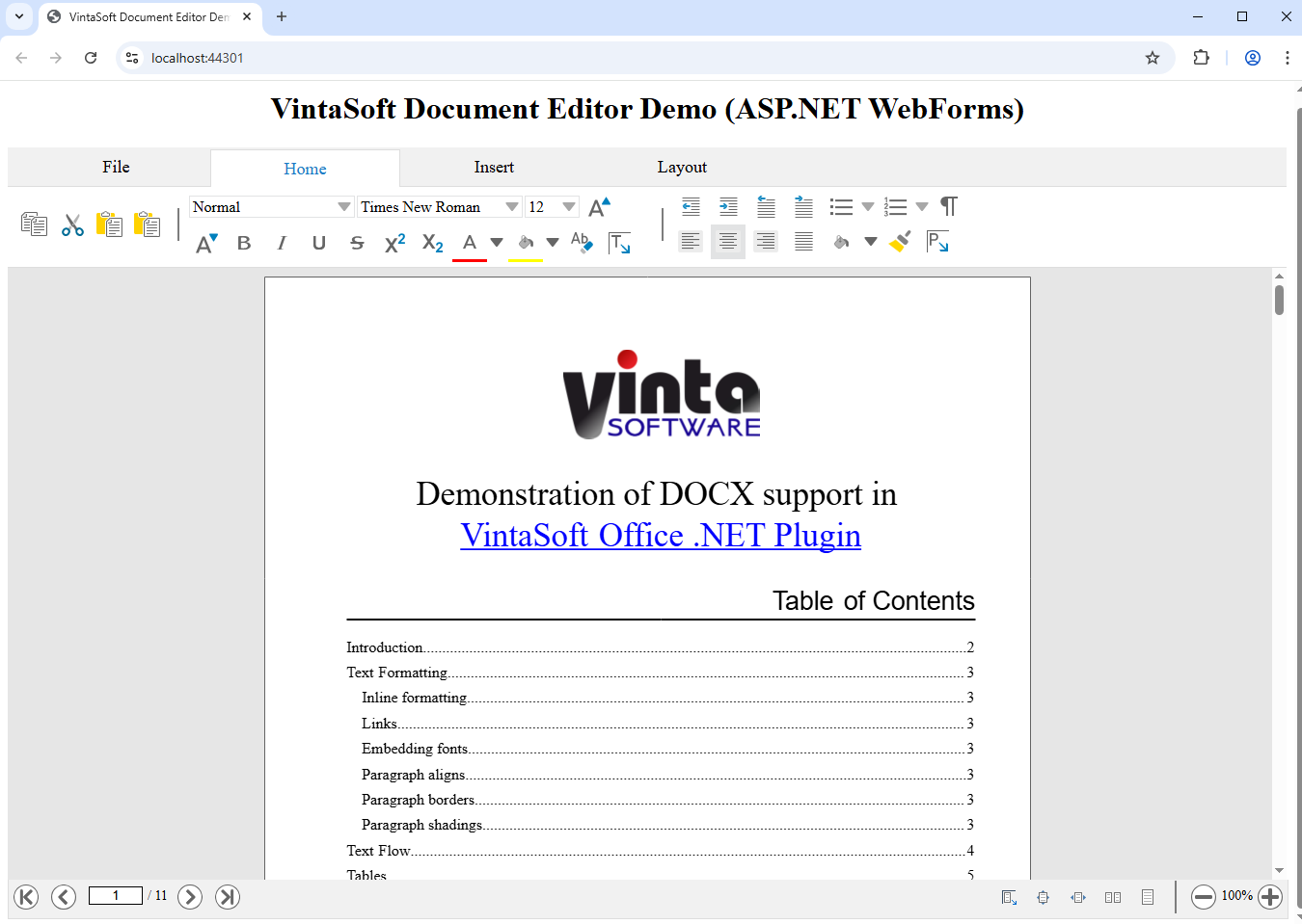<h1 style="text-align: center">VintaSoft Document Editor Demo (ASP.NET WebForms)</h1>
