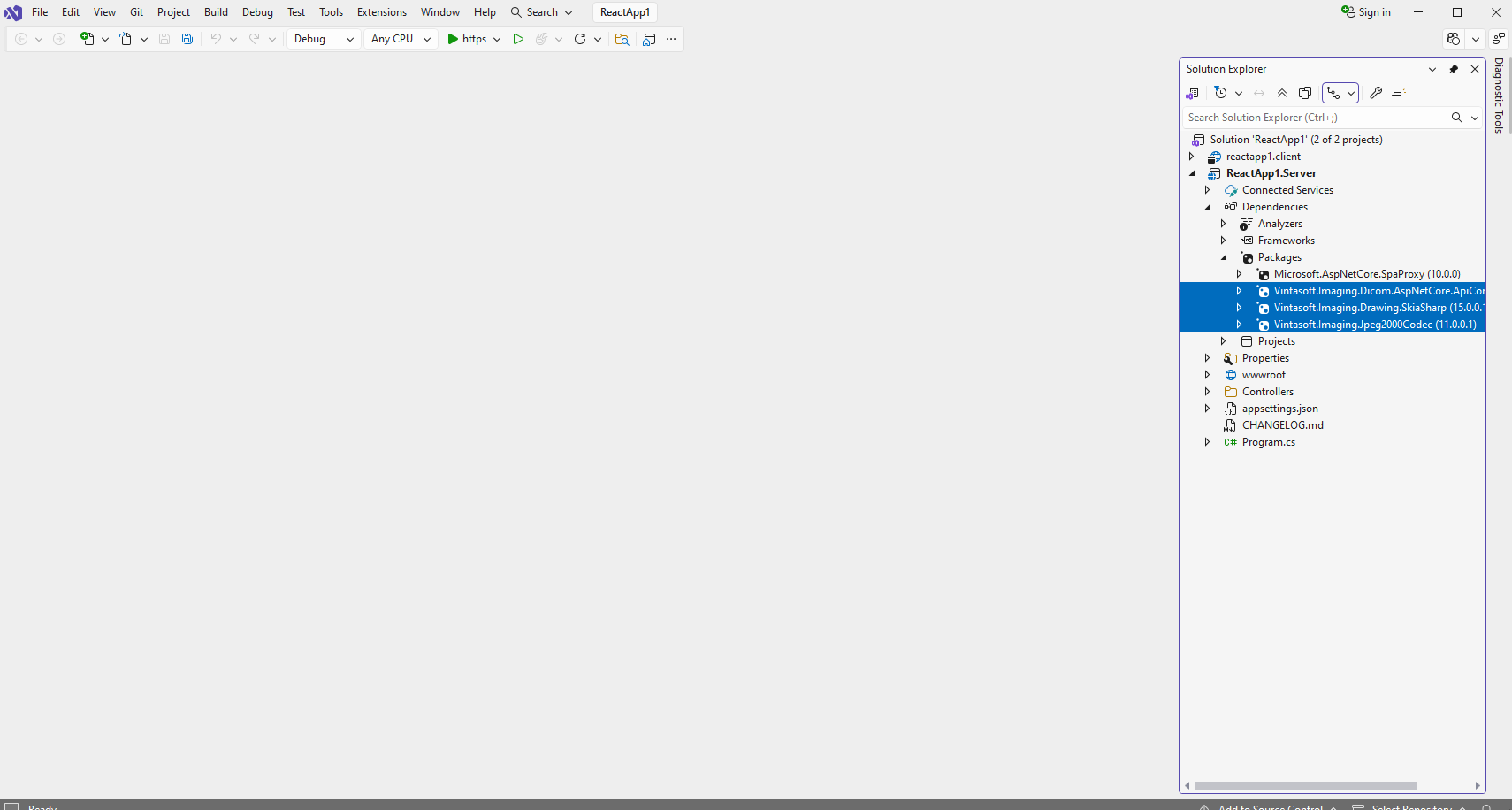 Проект "ReactApp1.Server": Добавьте ссылки на nuget-пакеты Vintasoft в проект "ReactApp1.Server".