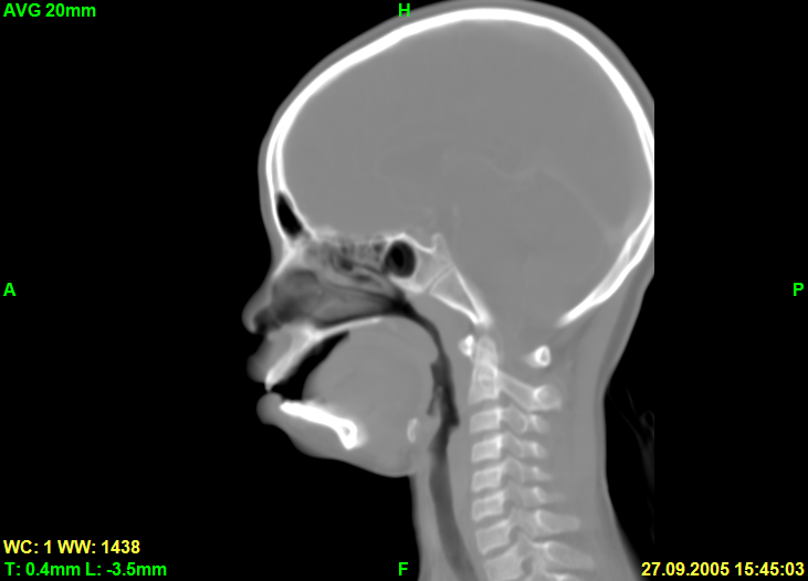 Вот скриншот сагиттального среза в режиме рендеринга MinIP: