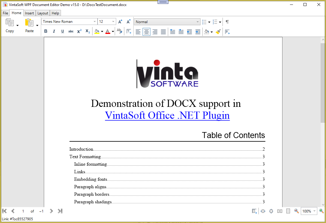 - Создавайте новый или открывайте существующий документ DOCX в WinForms/WPF редакторе документа
